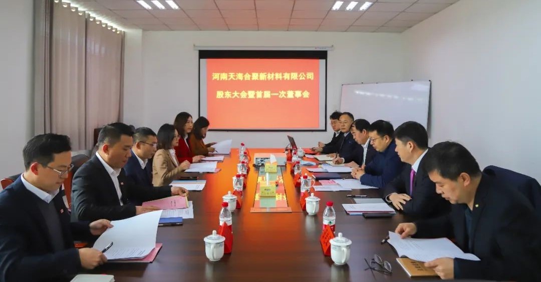 2021年12月31日,河南天海合聚新材料有限公司(以下簡稱“天海合聚”)股東會暨首屆一次董事會在天海合聚二樓會議室召開。會議股東雙方河南天海電器有限公司、湖北合聚高分子材料有限公司股東代表、股東推薦的董事人選參會,股東雙方相關(guān)高管列席會議。會議選舉產(chǎn)生了董事會、董事長、法定代表人和公司監(jiān)事;董事會聘任了總經(jīng)理、財(cái)務(wù)總監(jiān);審議了公司《章程》;討論了公司《2022年度經(jīng)營規(guī)劃》。